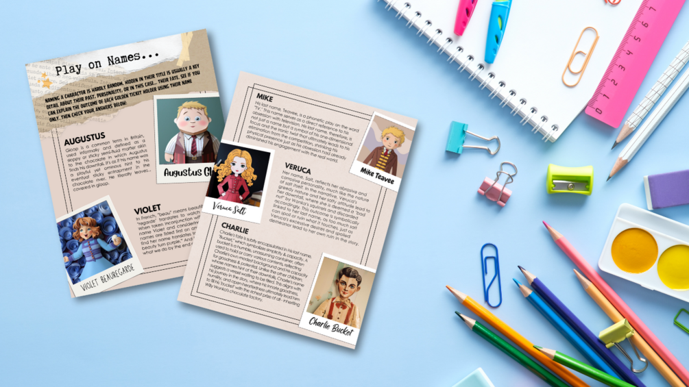 • Play on Names: Unravel the cleverness behind Dahl's character names, from the gluttonous Augustus Gloop to the gum-chewing Violet Beauregarde. Our guide provides insights into how these playful names contribute to the characters' destinies, enriching your report with deep character analysis.